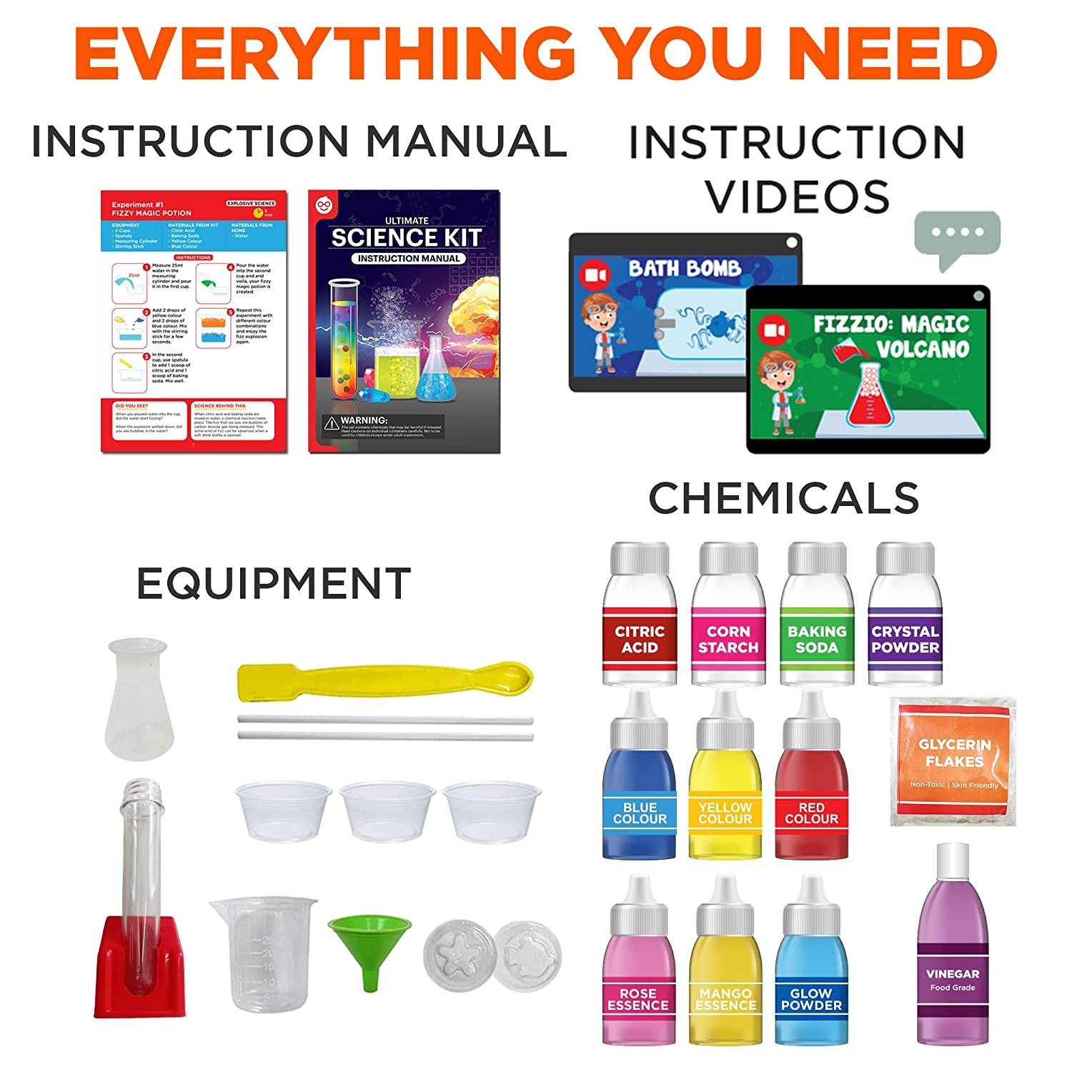 User-Friendly Experience – We’ve taken special care to package the chemical materials in separate leak-proof bottles, ensuring hassle-free experimentation. Your kids can conduct the experiments multiple times without worrying about creating a mess!