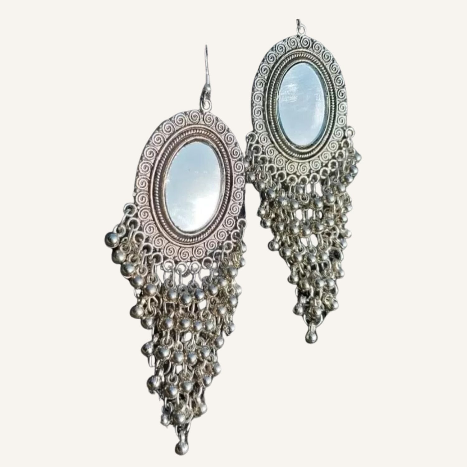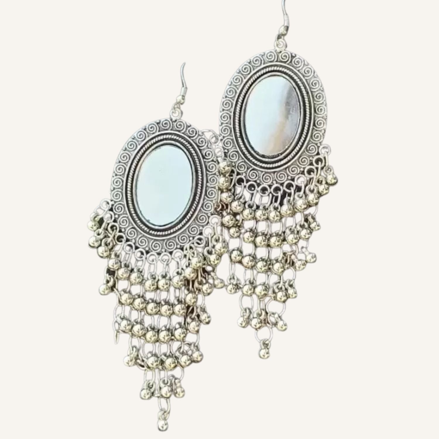 Introducing our beautiful Oxidised Silver Oval Earring, a stunning accessory designed for women and girls. Crafted with care, these earrings are made from high-quality German Silver, ensuring durability and a captivating silver and black color combination.