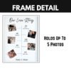 Our custom frames are designed to reflect your unique story. Each photo frame is personalized to incorporate your favorite photographs, carefully curated to tell the tale of your journey together. From romantic evenings to jubilant celebrations, every picture can be included to make your story visually compelling. This frame becomes not just a decoration but a beautiful representation of love and memories, ideal for your living room, bedroom, or as a thoughtful gift.